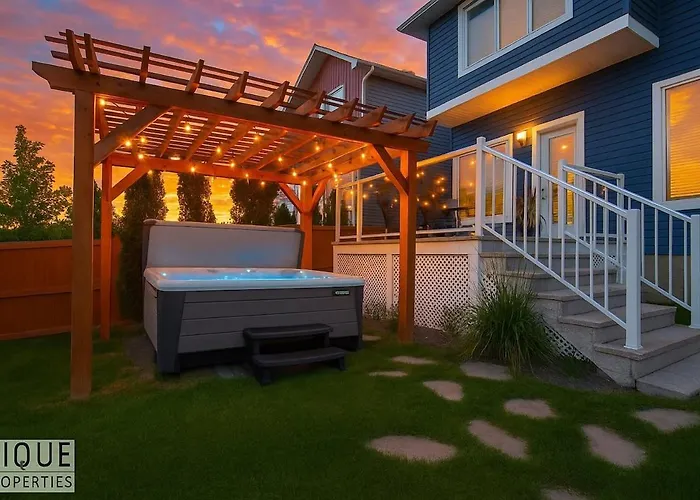 Nestled approximately 10 minutes' drive from St Thomas More Church, the spacious 84 m² Chic Retreat With Hot Tub - King Bed - Fireplace - Wem Edmonton apartment allows guests to explore numerous tourist destinations in the vicinity. To keep up with sports routine, access to a golf playground is provided.